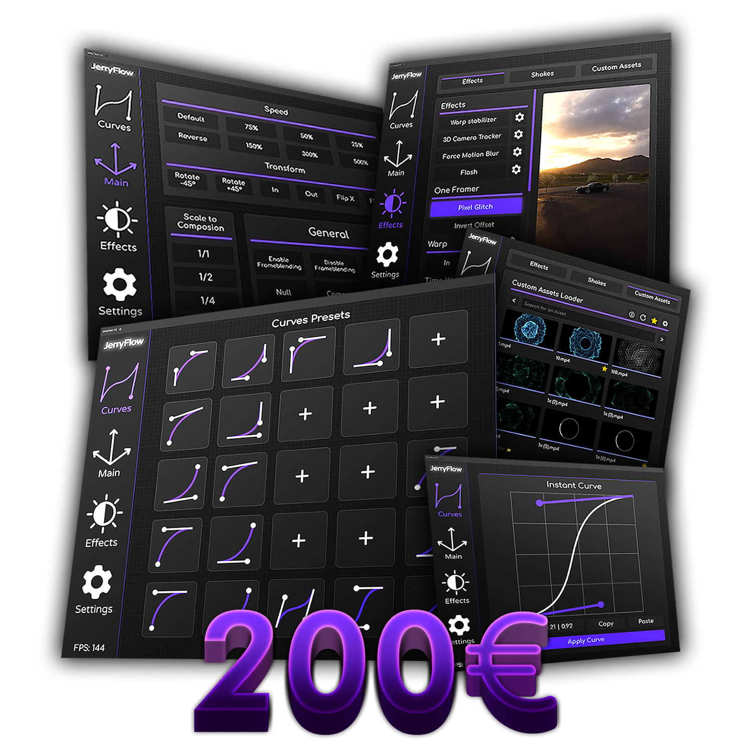 Jerry Flow V2 is next level. From optimizing my workflow to providing new ways to get creative with transitions, it's helped take my edits to the next level. It's not just for car edits either, techniques like shakes, transitions and speed ramping can be used in so many applications. Big bonus that the extension itself is actually optimized, so it doesn't slow up after effects like so many other plugins and extensions I've used in the past. Well worth the money.