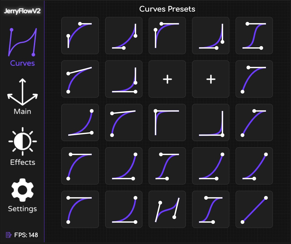 With Preset Curves, you can create up to 20 custom presets, in addition to the 5 pre-made "JryMedia" presets. This feature allows you to save your favorite curve adjustments and apply them quickly to future projects. The curve graph enables you to experiment and refine your presets, providing a robust toolset for creating consistent, high-quality animations. Whether you’re using the pre-made options or developing your own, Preset Curves offer unparalleled convenience and customization for your workflow.